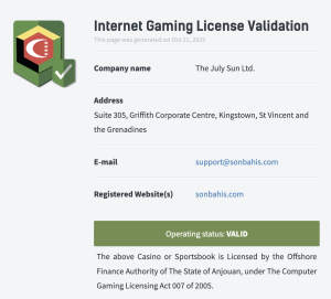 Sonbahis, The July Sun Ltd. Lisans Denetleme Kurulu’nun gözetiminde faaliyet gösteren bir platformdur. Kullanıcı fonları güvenli hesaplarda saklanır ve tüm işlemler lisanslı altyapı üzerinden yürütülür. Üyeler, yatırımlarının korunduğu bir ortamda rahatça oyun oynama imkanına sahip olur.
